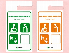 身体障がい者等用駐車場を利用する際、車内のルームミラーにかけるなど、外側から見えやすいように表示していただきます。