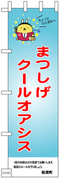 「まつしげクールオアシス」ののぼり旗が目印です。